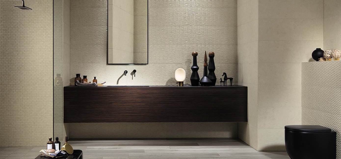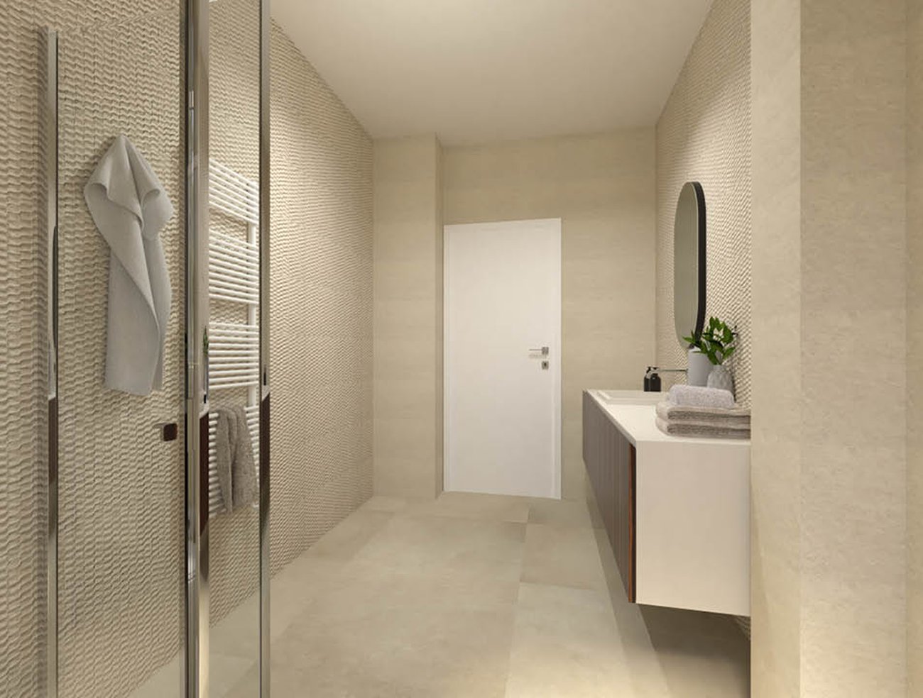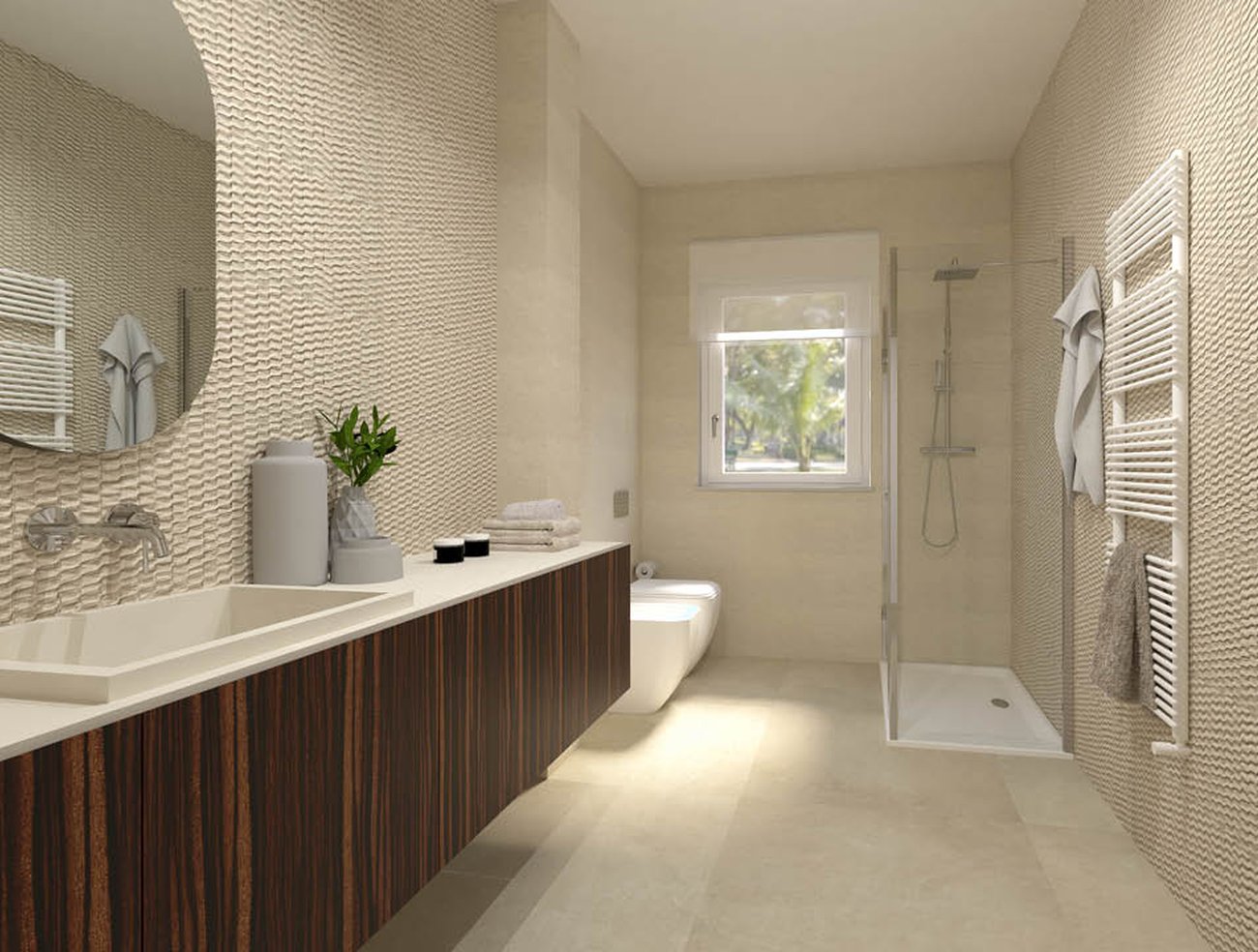 Immagine di progetto bagno di forma Rettangolare, realizzato con piastrelle a rivestimento LUMINA STONE