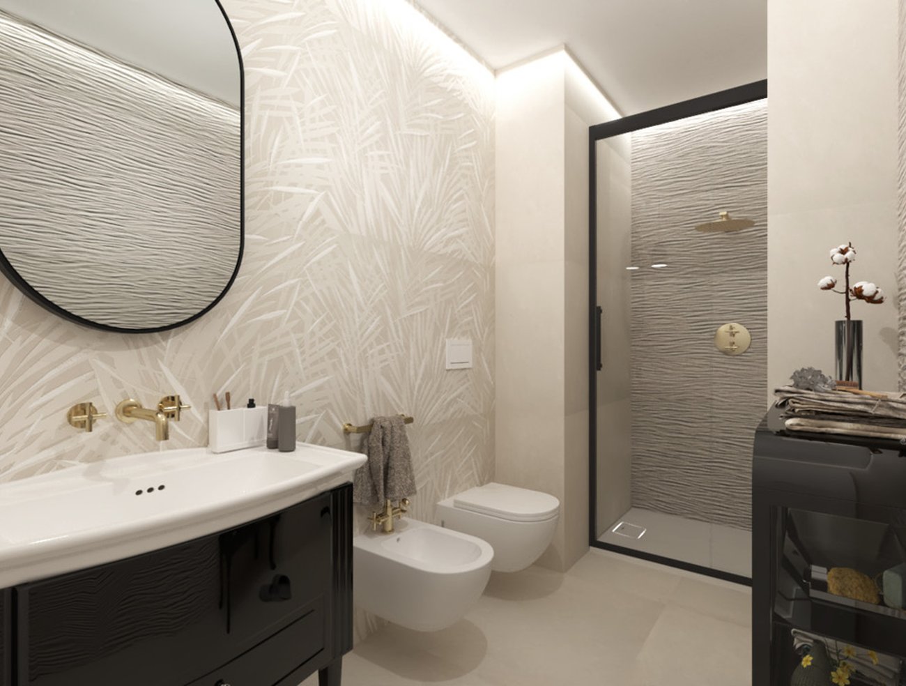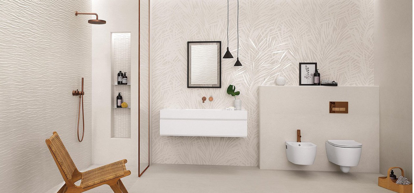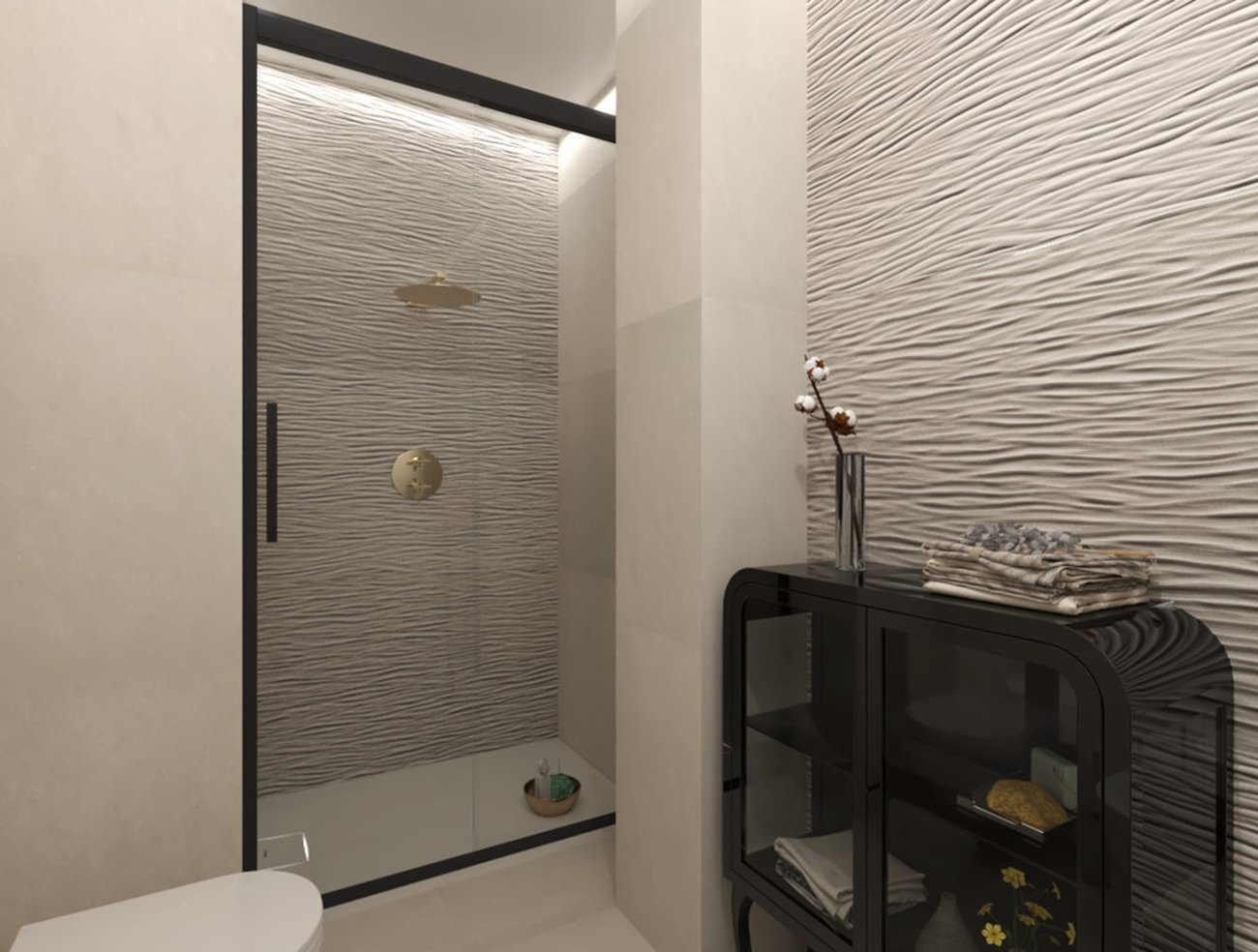 Immagine di progetto bagno di forma Rettangolare, realizzato con piastrelle a pavimento SHEER e piastrelle a rivestimento SHEER