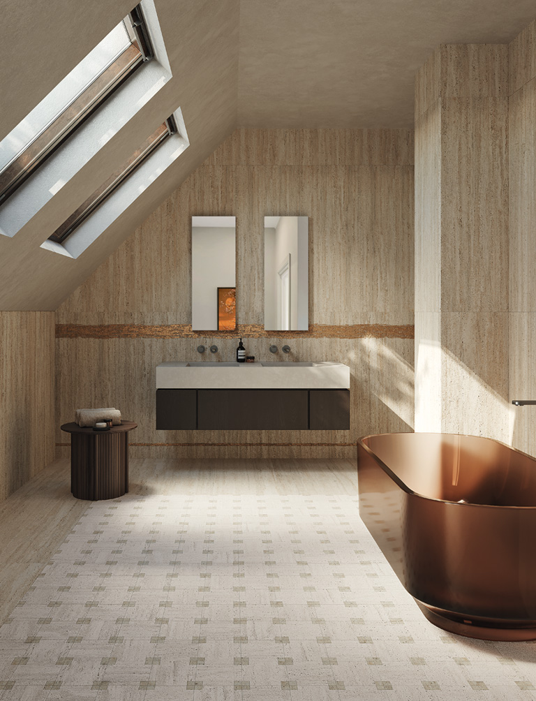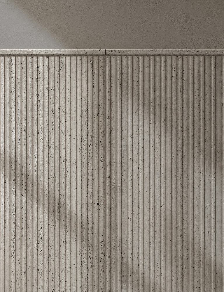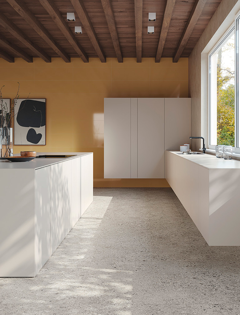 L'estetica di queste superfici è talmente potente da non richiedere complementi d'arredo eccezionali per creare ambienti dallo stile unico e raffinato.