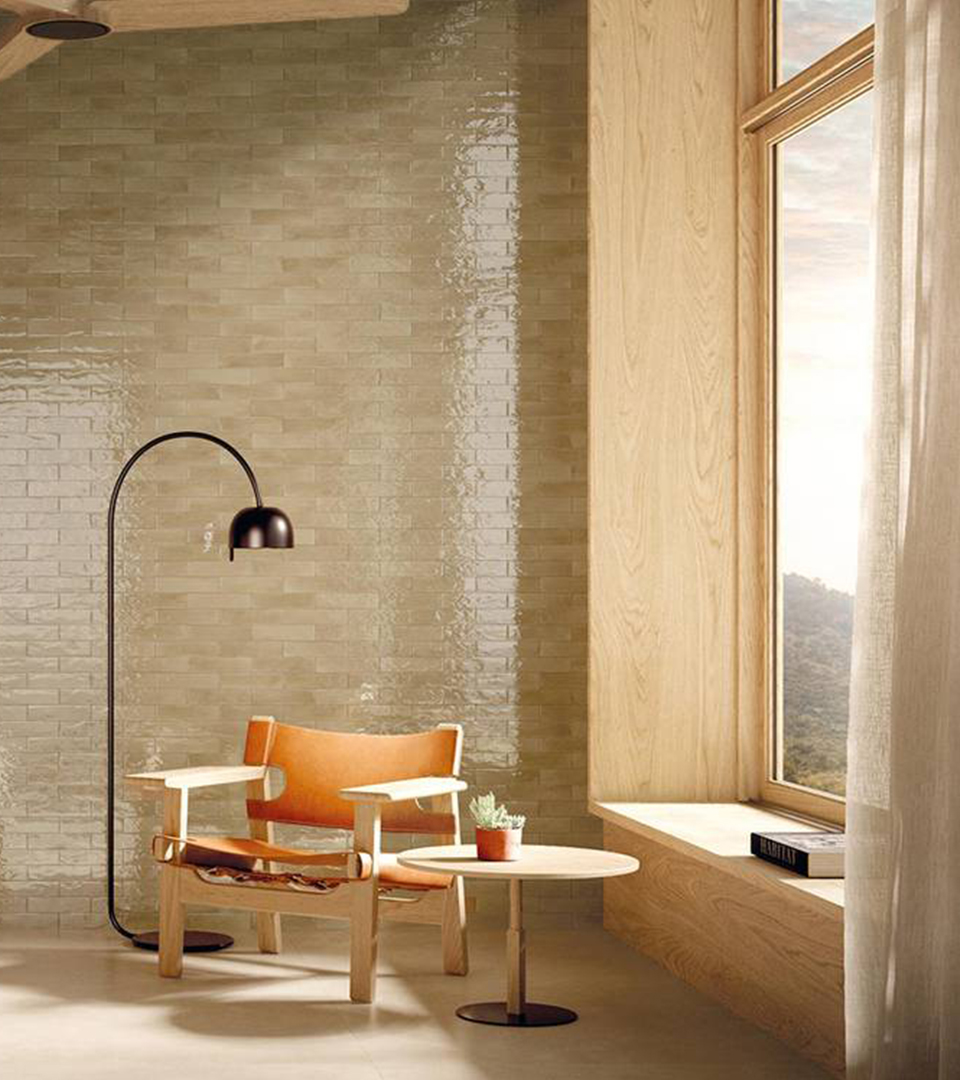 Se scelto per i rivestimenti cucina, può essere abbinato al marrone per un look più caldo, o al nero e al bianco per una composizione più contemporanea.