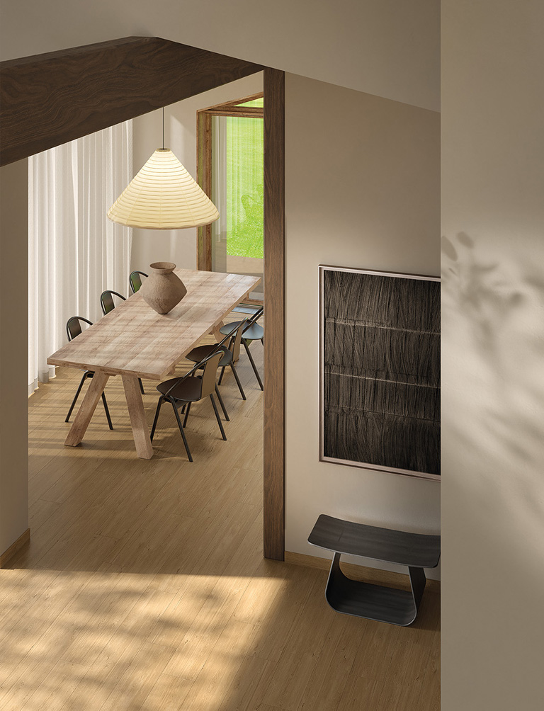 Una serie di piastrelle in gres porcellanato effetto legno in perfetto stile Japandi, pensate per portare negli interni armonia, benessere e calore.