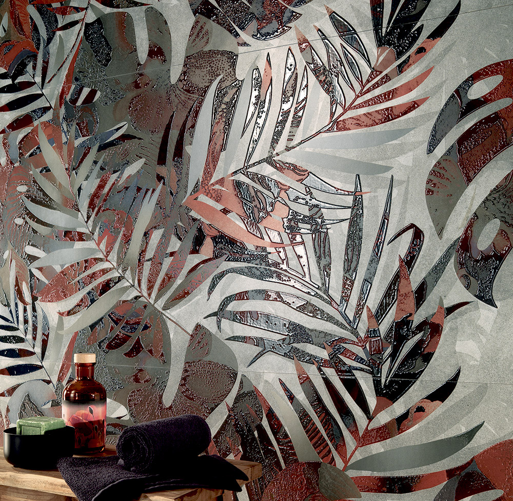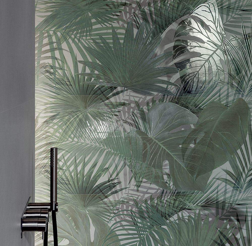 Gli spazi vengono così rivoluzionari a colpi di foliage, bouquet floreali, boschi e giungle prorompenti, micro pattern geometrici e orditi materici seriali, impreziositi da rilievi 3D, inserti metallici, eleganti accostamenti cromatici. Un maestoso superamento della carta da parati più artistica ed estrosa espresso su ceramica, materiale architettonico e tecnologico per antonomasia, resistente, igienico e sicuro. Vediamolo insieme!