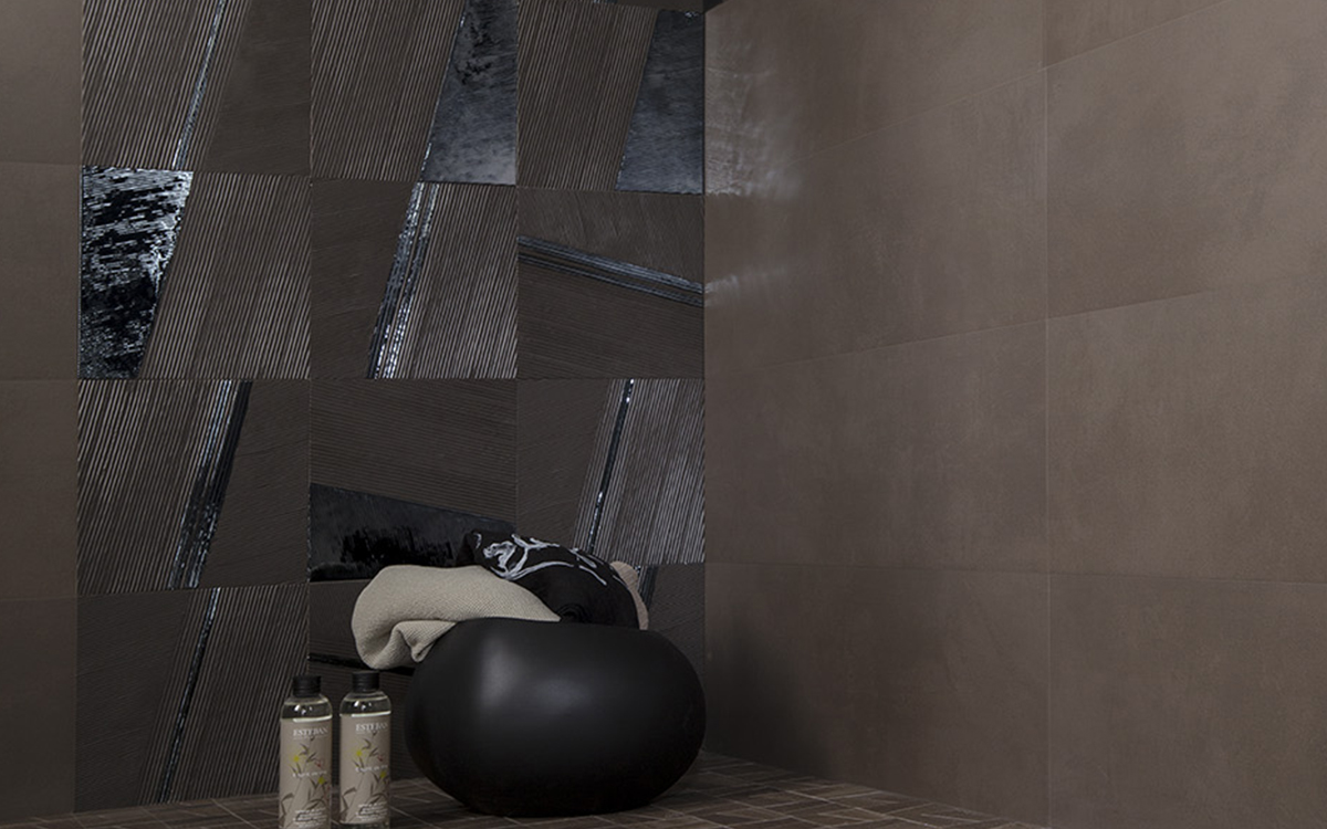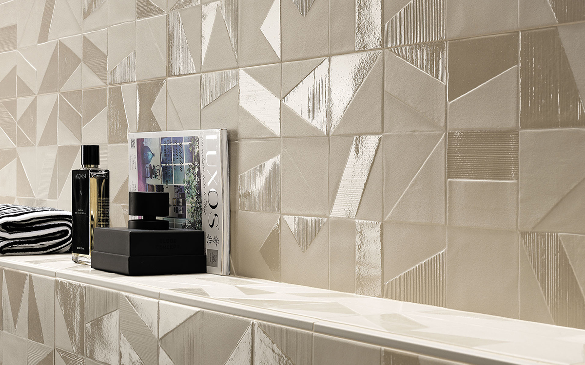 I contrasti non si esprimono solo in superficie, nella resa grafica o materica, ma prendono corpo sulla ceramica con vigore e leggerezza, dando ai rivestimenti in pasta bianca ritmo e lucentezza rari.