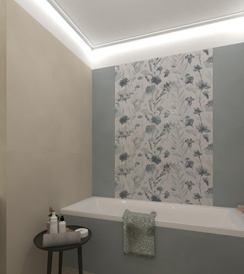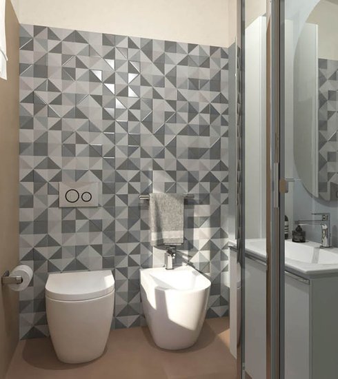 Immagine ambiente Bagno, realizzato con piastrelle della collezione: MILANO MOOD - Grigio, Azzurro, Bianco