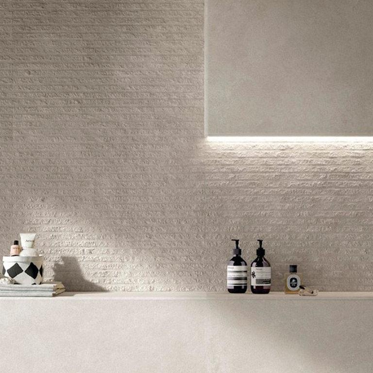 In floor and wall tiles the shade isn’t merely neutral: it becomes a luminous backdrop against which textures, materials and interactions with the light reach their full potential, for the creation of interiors with a mood of calm, balance and timeless modernity.