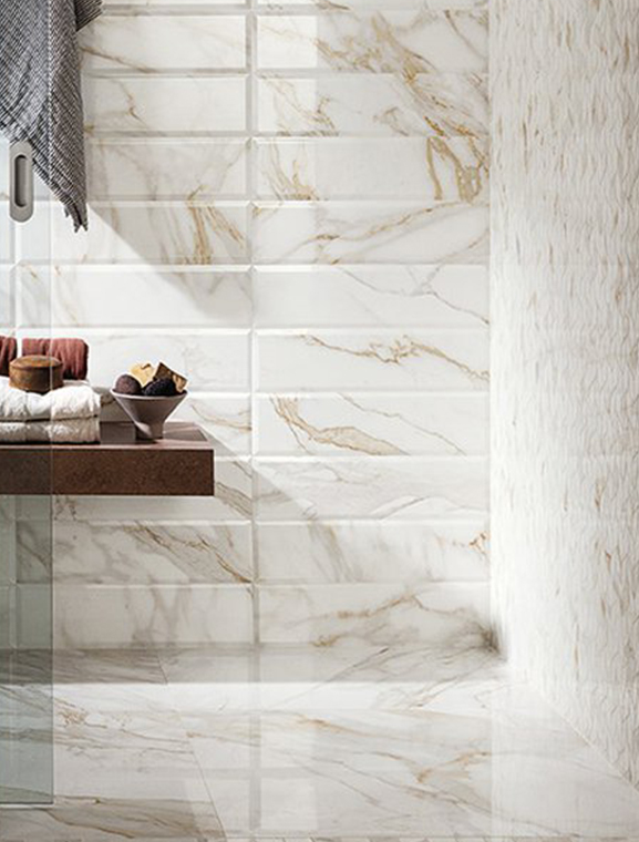 Широкоформатная декоративная настенная плитка не останавливается на достигнутом и создает оптическую иллюзию прорыва стены. Ванная комната будто раздвигает границы навстречу романтическим пейзажам, создающим атмосферу красоты и великолепия.