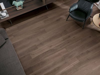 Пол также способствует визуальному увеличению пространства, привнося в него тепло и элегантность. Для оформления домашнего офиса FAP рекомендует плитку под дерево FAPNEST в оттенках Silver или Maple – это нежные цвета с матовым эффектом. Плитка придает офису естественный вид благодаря воспроизведенным прожилкам, узелкам и оттенкам, характерным для дерева.