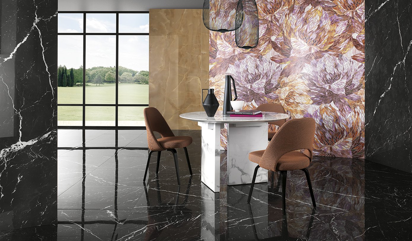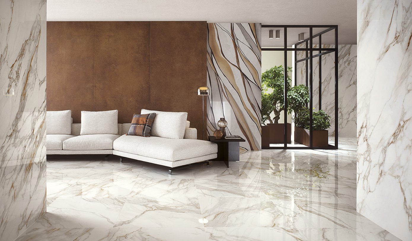 Керамогранит крупного формата под сверкающий и сатинированный мрамор, с нежным мягким эффектом и с эффектом ржавого металла. Плитка размером 120x278 см и толщиной 6 мм в совершенстве подходит для напольной и настенной укладки. Коллекция гарантирует великолепный эстетический результат и минимальное количество стыков, а также безграничную свободу дизайна и творчества для создания интерьера в едином стиле.